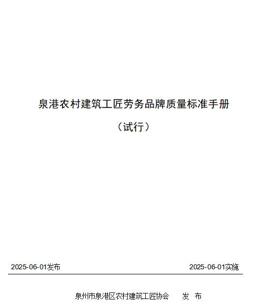 泉港农村建筑工匠劳务品牌质量标准手册(试行)